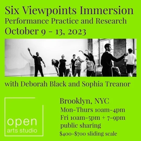Each evening will include a full body warm-up, solo and collaborative improvising, tools to connect the Six Viewpoints to your own creative work, and discussions about the complex work of having a body, agency, and being human on this planet.